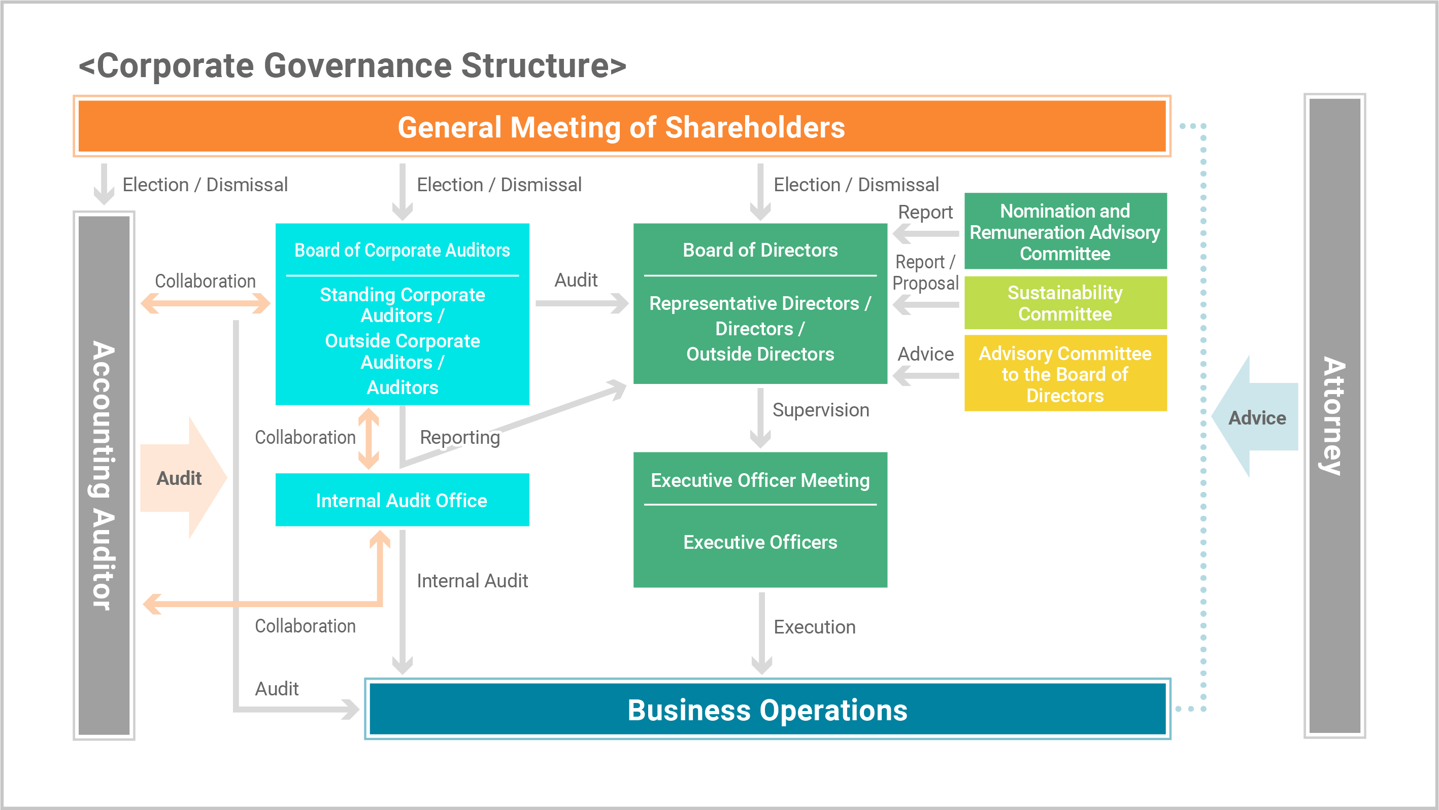 When appointing or reappointing directors, the Board of Directors consults with and receives reports from its advisory body, the Nomination and Remuneration Advisory Committee. After considering the content of such reports, the Board of Directors resolves an agenda for the General Meeting of Shareholders, and a final decision is reached by resolution at the General Meeting of Shareholders.